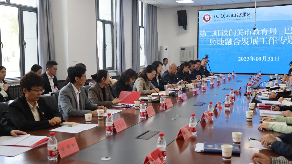 为深入贯彻党的二十大精神,贯彻习近平总书记视察新疆和兵团重要讲话重要指示精神,促进兵地职业教育融合发展。10月23日上午,第二师铁门关市教育局、巴州教育局、bat365在线中国官网登录入口和巴音郭楞职业技术学院在bat365在线中国官网登录入口铁门关校区召开兵地融合发展工作专题会。