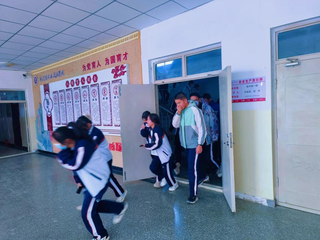 教学楼前,各班班主任迅速清点人数,层层上报,整个过程用时2分30秒,库尔勒校区1400余名师生全部安全撤离疏散完毕。