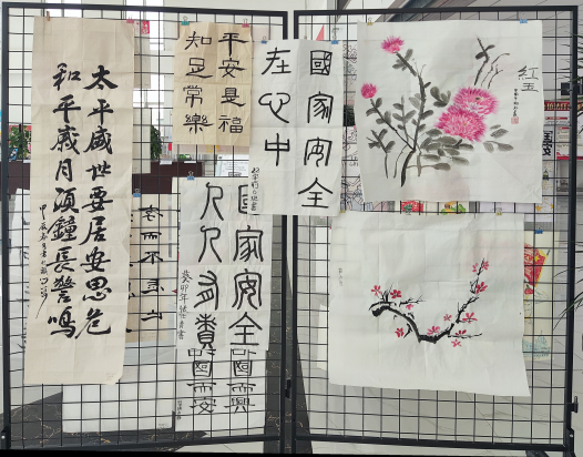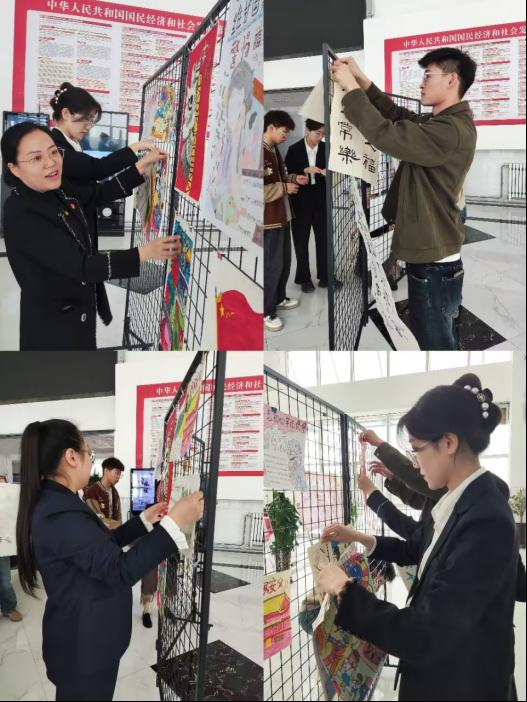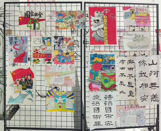 活动最后,全体党员、入党申请人和青年团员在燕赵楼大厅开展“总体国家安全知识”主题书画展活动,共同布置画展场地,展示学生们关于国家安全主题的艺术作品。