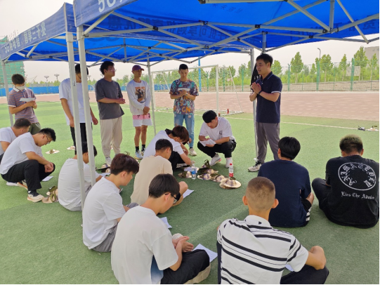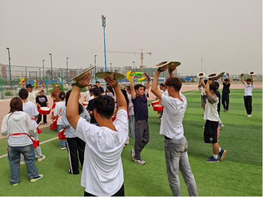 5月16日至19日,bat365在线中国官网登录入口特邀河北省正定县弘文中学的锣鼓艺术教师陈哲和苏磊前来学院铁门关校区对学院战鼓社团进行为期3天的专业指导和集中训练,战鼓社团全体成员参与此次集训。