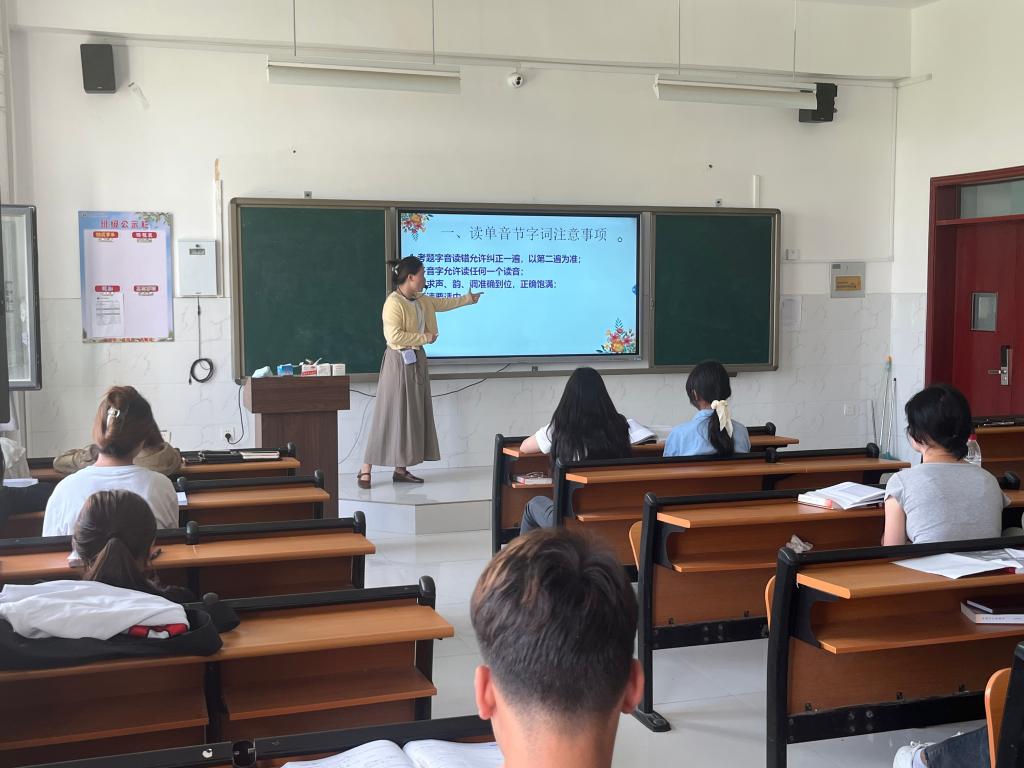 此次普通话水平测试培训由基础教学部语文教研组教师们担任主讲,教师们结合普通话测试标准及要求分别向考生详细介绍了普通话水平测试的应考技巧、注意事项、评分标准及测试流程。从理论到实践,从普通话的定义;声、韵、调、语流音变;轻声、儿化、单音节字、多音节词的发音与朗读;短文朗读、命题说话等对培训学生进行针对性指导。教学中,语文教师们还结合学生实际情况,与学生进行互动交流,针对同学们感兴趣的问题做了耐心细致的解答。