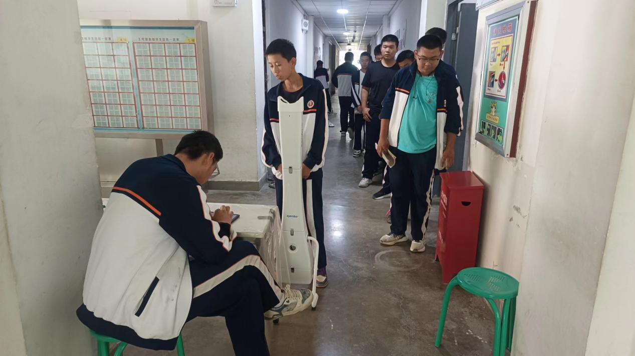 检测现场,各班主任、系部认真组织,工作人员耐心指导,学生积极配合,场秩序井然。学院工作人员多次参加二师教育局组织的相关培训学习,能熟练运用设备仪器、无人筛查系统和青少年视力保护智能管理系统,实现了学院近视防控信信息化、智化管控、常态化管控。