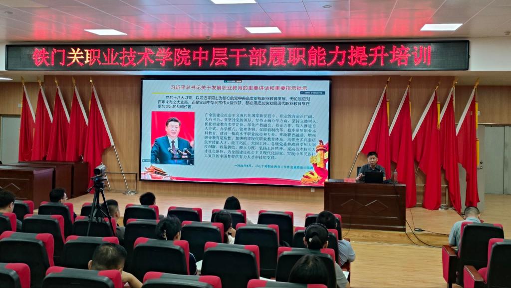 学院党委副书记、院长苏强在培训会上,提出了学院中长期发展思路及目标,牢牢把握学院“三五”工程发展路径,希望全体中层干部以学院定位定向为基准,以学院发展目标为方向,不断提升履职能力,成为推动学院高质量、高水平发展的中坚力量。