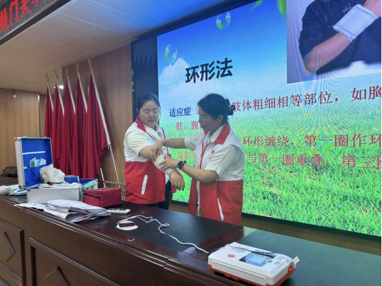 培训过程中,二师红十字会急救专家通过生动的案例分析,深入浅出地讲解了常见意外事故的紧急处理方法,包括心肺复苏、AED的使用、止血包扎、骨折固定等,详细介绍了每一项急救技能的操作要领并进行示范,让大家更加直观地了解正确的操作方法。