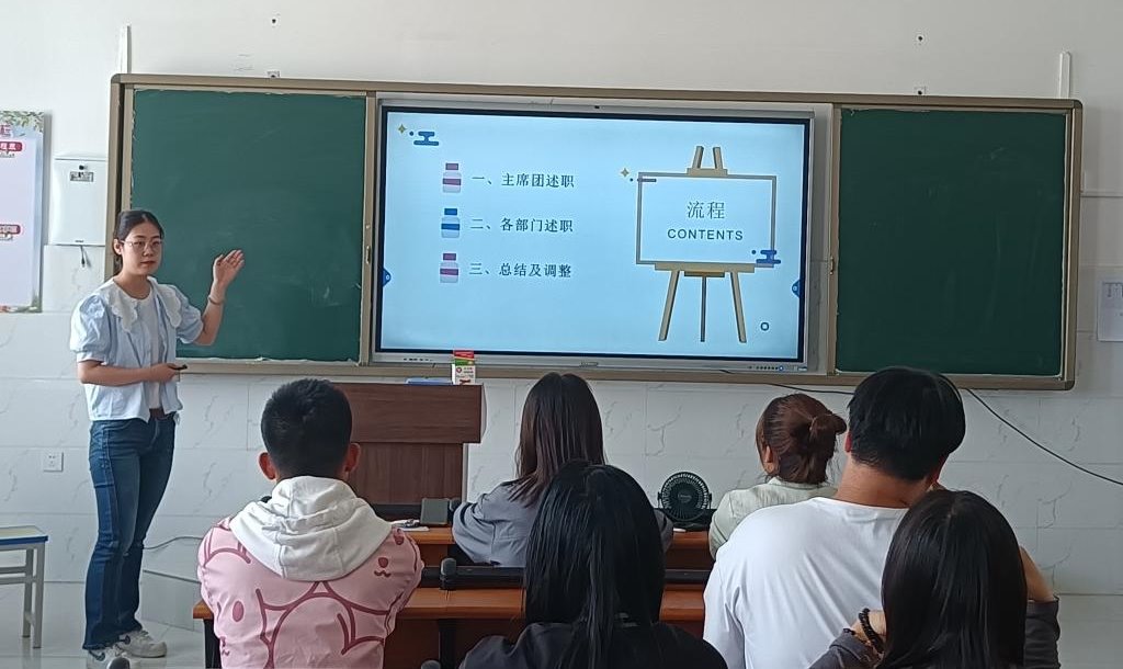 首先心理委员会理事会、秘书处、心理学知识研究与培训部、心理活动策划与组织部4个部门依次将本学期部门的工作成果及情况进行述职汇报,总结了本学期心理委员会开展的各项活动,如:心理咨询排班情况、525大学生心理健康月、每月专题团辅活动以及心理委员会运行状况等。