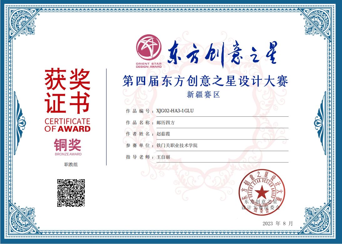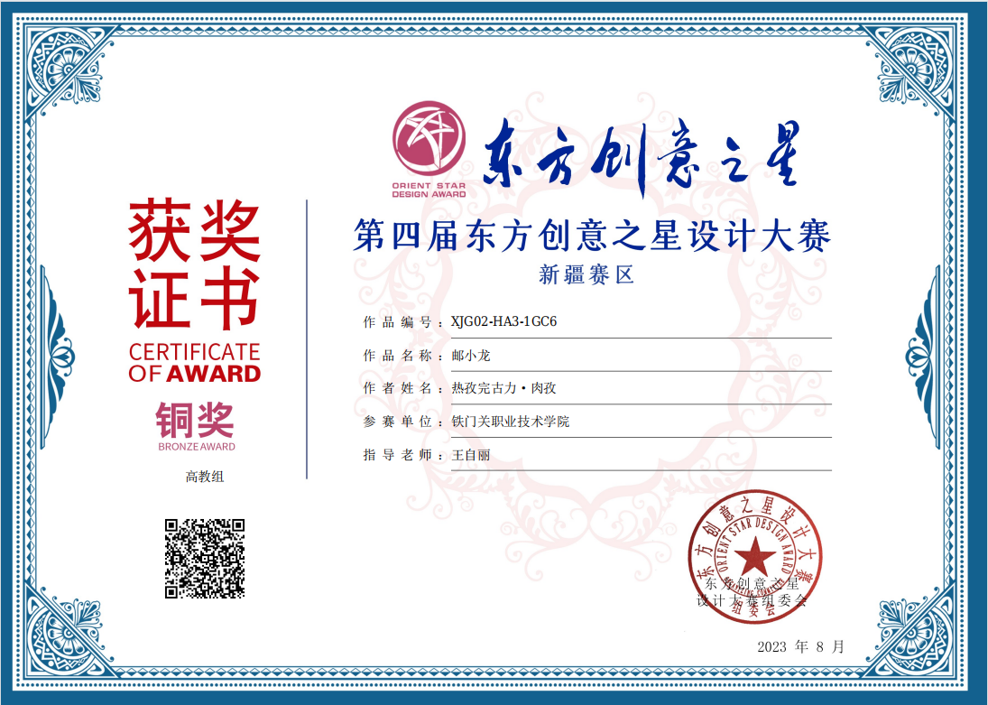 近日,第四届东方创意之星设计大赛新疆赛区结果正式揭晓,bat365在线中国官网登录入口信息工程系数字媒体专业学生首次参加此赛项,获得3枚铜牌!