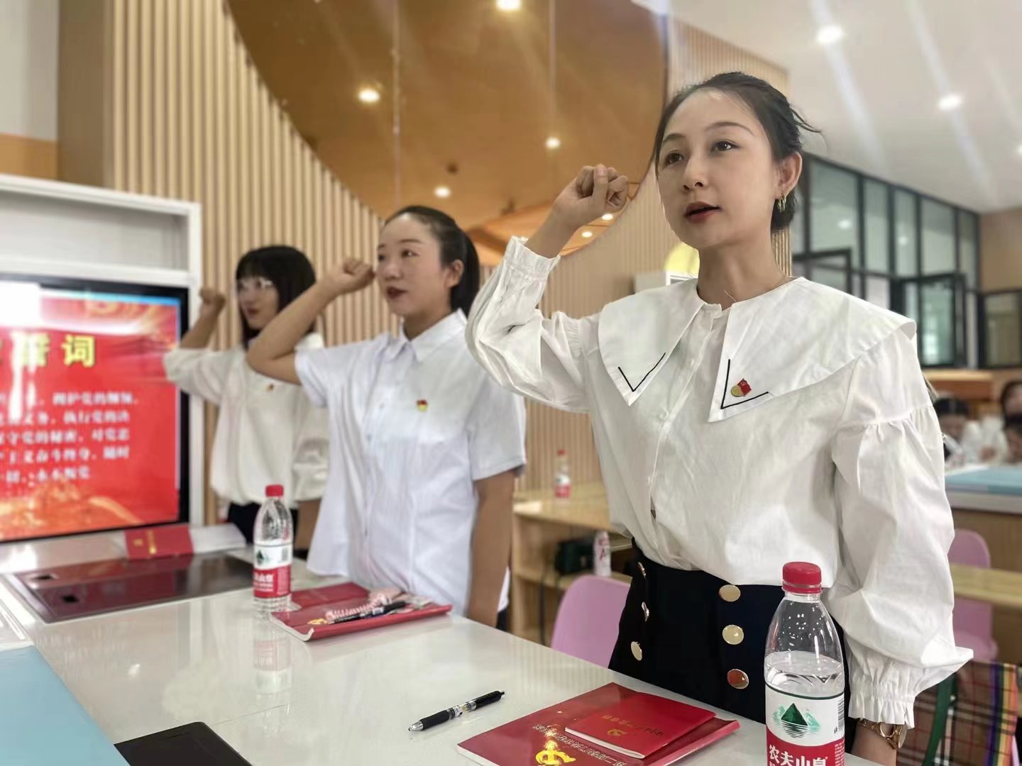 活动中,全体党员在教育艺术系党支部副书记带领下,一同重温入党誓词,在铿锵有力的誓词中牢记自己对党的庄严承诺,坚定信仰,永葆共产党员的政治本色。