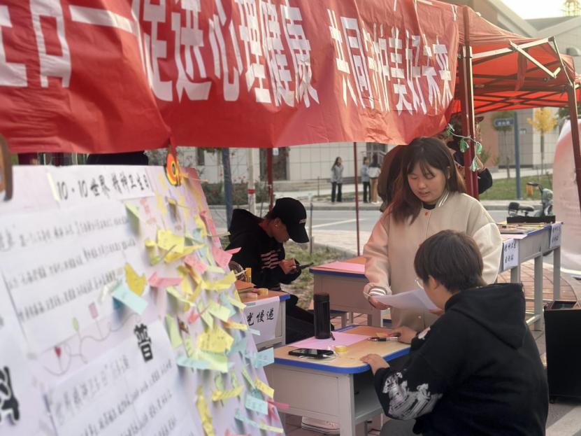 大家通过现场填写自测问卷,了解自己的近期的心理状态,现场的心理委员会成员逐一为大家答疑,及时做出心理状态调整,活动现场氛围热烈。
