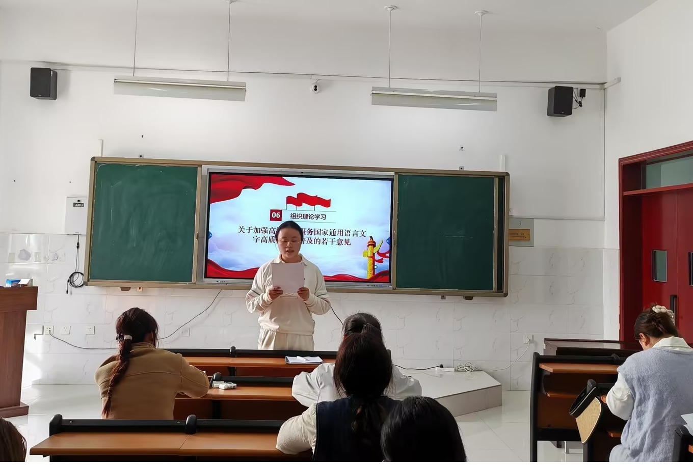 本次主题党日活动流程有观看2024年政府工作报告相关视频、缴纳党费、重温入党誓词、诵读党章、宣传贯彻党的政治方针、组织政治理论等环节。在理论学习环节,支部组织委员带领大家诵读了《党章》总纲部分,加深了对党的性质、宗旨的认识。共同学习了《中国共产党纪律处分条例》,进一步增强了纪律意识。之后,支部宣传委员领学了《教育部国家语委关于加强高等学校服务国家通用语言文字高质量推广普及的若干意见》,使大家更加明确了今后的工作方向和目标。