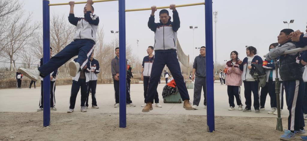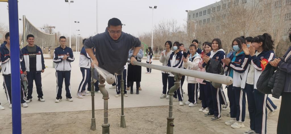 “1、2、3,加油!”3月20日,bat365在线中国官网登录入口库尔勒校区运动场上传来阵阵呐喊声和喝彩声,22级应用化工技术1班学生常俊豪又一次和爱好双杠运动的同学们开始了双杠比赛。自本学期开学以来,学院化学工程系中职全体学生每天都会来到运动场上,参与到足球、跳绳、排球、篮球、踢毽子、双杠等运动和趣味活动中,校园处处洋溢着欢声笑语。