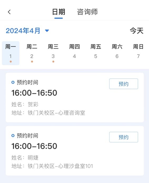 在心理咨询预约方面,学生可以根据自己的实际需求,选择合适的咨询老师和咨询时间,确保服务的个性化与精准化。平台中详细介绍了每位咨询老师的专业背景、擅长领域等信息,为学生提供了更多选择的空间。