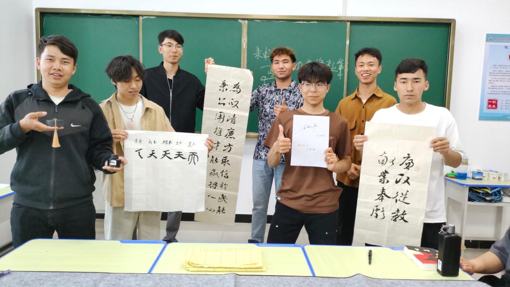 活动结束后,2023级油气储运技术1班学生达尼亚尔·阿卜拉分享了他的感受:“在练习书法的过程中,我不仅学会了如何写好每一个字,更重要的是学会了如何去感受每一个字背后的文化和历史。而朗读《红岩》则让我对那段波澜壮阔的历史有了更加直观的认识。”