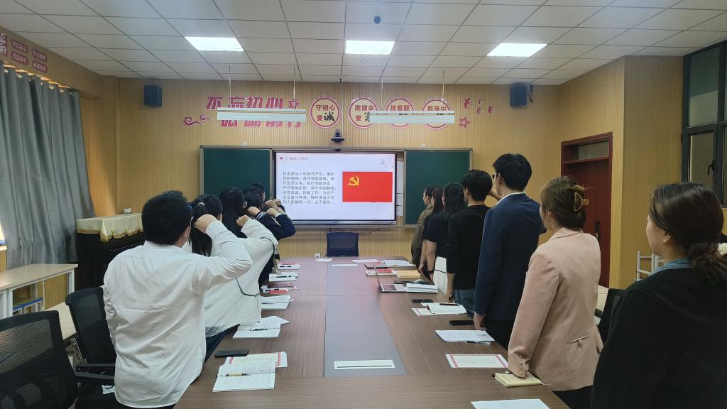 随后,大家共同诵读《中国共产党章程》第八章——党的纪律检察机关的相关内容,大家进一步认识到了新时代全面从严治党的重大意义。全体党员教师重温了入党誓词,在铿锵的誓言中表达出坚定的信仰。接着,大家用饱满的热情诵读了红色经典篇章《百年芳华》,传递出对党的无限热爱和对祖国的深情厚意。