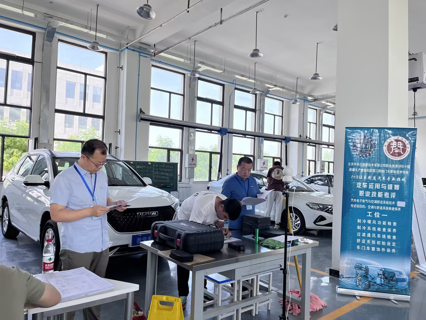 考核中按照1+X考核评价组织对考核站点人员配置、管理制度、场地环境、设备配置的总体要求,汽车系精心组织,邀请1名督导员及4名考评员,规范有序地开展考核评价工作。