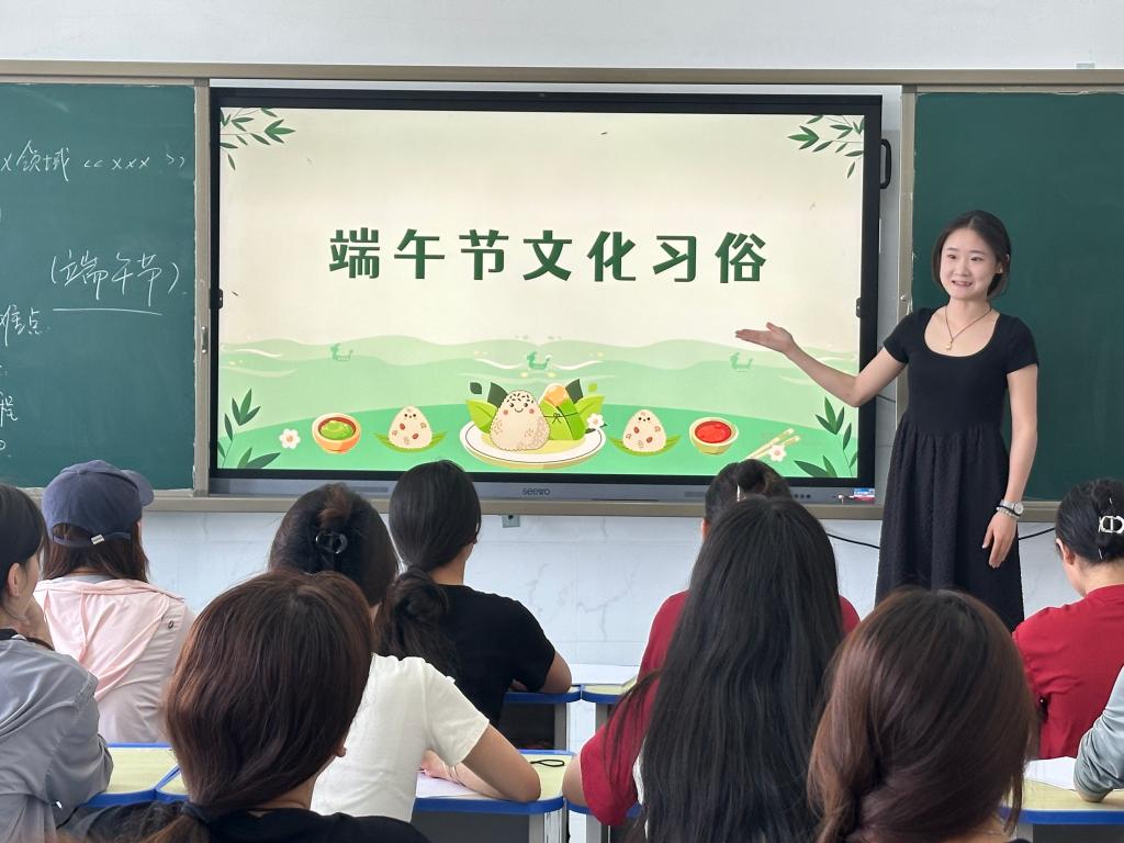 活动伊始,系部教师首先讲述了关于端午节的起源,以及纪念屈原投江等历史故事,让学生更好了解端午节的来历和其文化内涵。学生在历史故事中感受到了传统文化的深厚底蕴,进一步加深了对端午节文化的理解,增进了师生的爱国情怀。