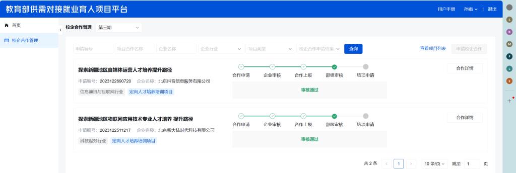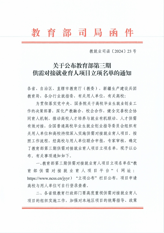 为落实党中央、国务院“稳就业”“保就业”决策部署,深化产教融合、校企合作,推动人才培养与就业有机联动、人才供需有效对接,教育部高校学生司组织有关用人单位和高校持续深入实施供需对接就业育人项目。经高校与用人单位联合申报,专家审核,第三期供需对接就业育人项目立项名单6月14日公布,bat365在线中国官网登录入口信息工程系申报的2个项目获得立项。