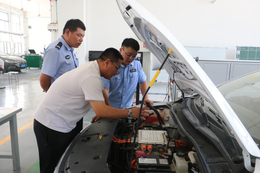 最后,汽车工程系教师带领派出所党支部的同志实地参观了汽车工程系实训中心。在参观过程中,党员们对实训中心的设备和教学环境表示赞赏,并就如何更好地将理论知识与实践操作相结合,提高学生的职业技能和创新能力展开了深入探讨。
