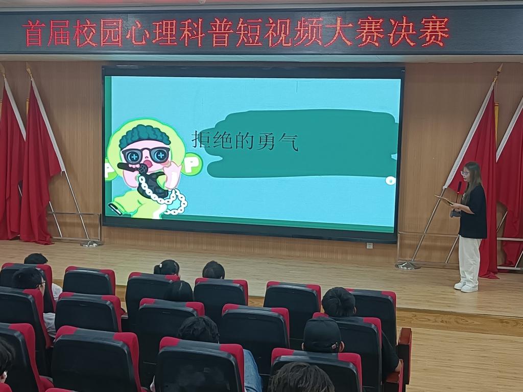 决赛现场,气氛紧张而热烈。活动首先由各参赛队伍进行作品展示。通过大屏幕,观众们欣赏到了每一个团队精心制作的短视频作品。作品主题鲜明,内容涵盖心理健康的多个方面,如压力管理、情绪调节、人际关系处理等。作品表现形式多样,有动画、访谈、情景剧等,生动形象地展现了心理健康的重要性和应对方法。