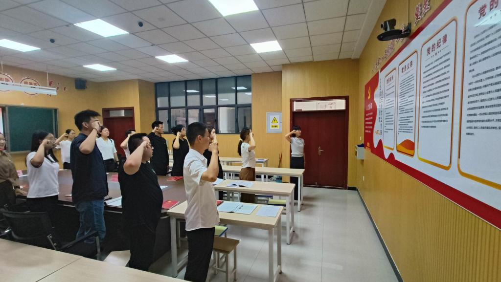 随后,教育艺术系党支部全体党员及递交入党申请书的教师共同诵读《中国共产党章程》第七章——党的纪律的相关内容,大家进一步认识到了党规党纪的重要意义。全体党员教师重温了入党誓词,以铿锵有力的宣誓声,表达不忘初心、牢记使命的坚定信仰。