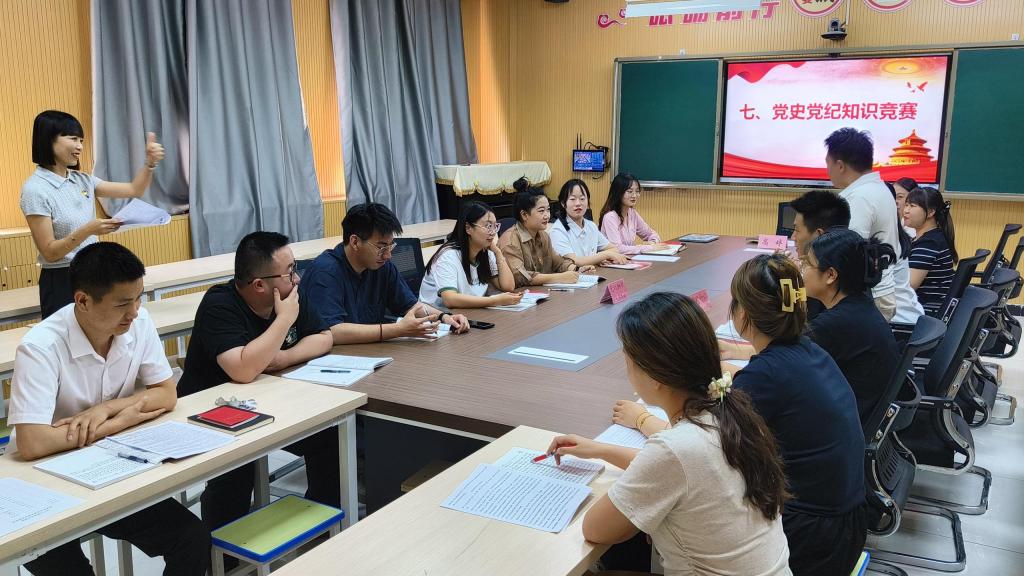 活动中,开展了党史党纪知识竞赛,参加竞赛的共有2支队伍,采用分组作答、累计积分的形式进行。党员教师踊跃参加,比赛现场气氛热烈而紧张,系部教师方佳璐积极抢答,展现出扎实的知识储备,获得了本次知识竞赛的最高分。