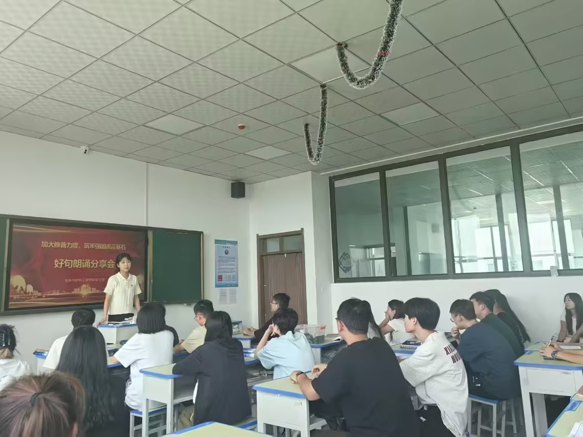 9月10日,在第27届全国推广普通话宣传周来临之际,bat365在线中国官网登录入口化学与材料工程学院党支部为提升师生的语言能力和文化素质,营造良好的语言环境,组织开展了“好句朗诵分享会”主题活动。党支部党员教师和30余名学生参与。
