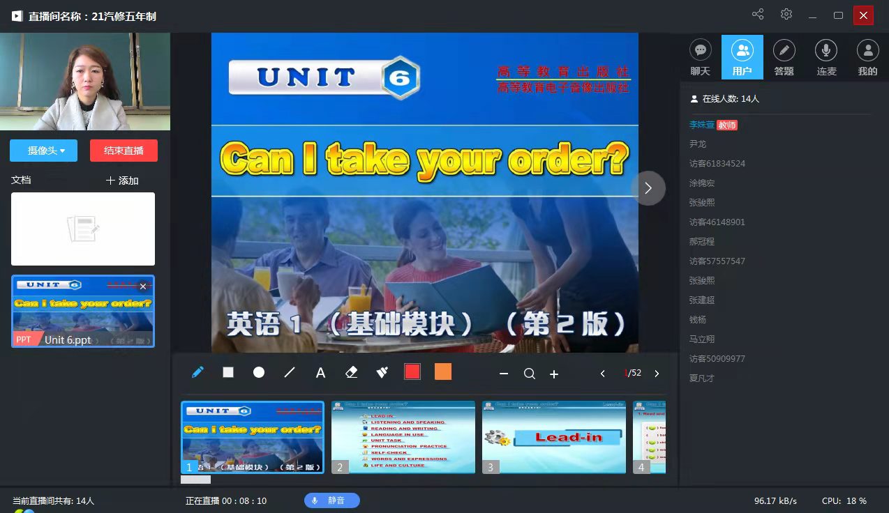 “看,李姝萱老师的直播课开播了”,这是第一天线上课程开始时学生们的第一反应;直播课架起了师生之间学习交流的网络桥梁,我们老师们也可以成为最美主播。
