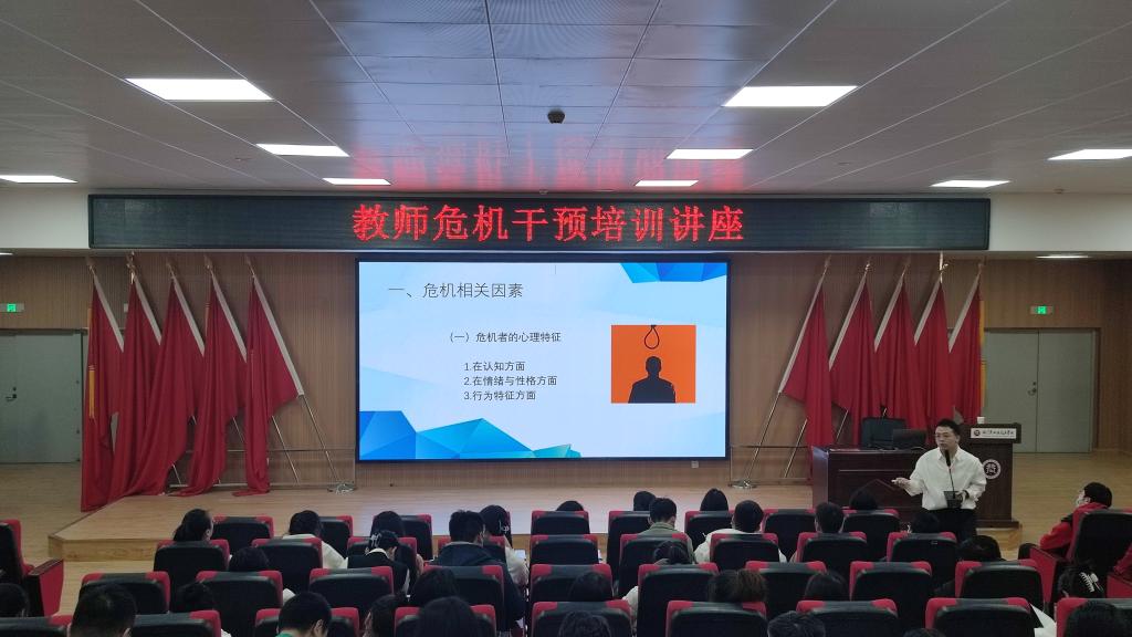 2月22日、24日,bat365在线中国官网登录入口心理教学部(心理咨询服务中心)以“心理危机干预”为主题开展教师心理知识培训讲座,学院全体教师参加。